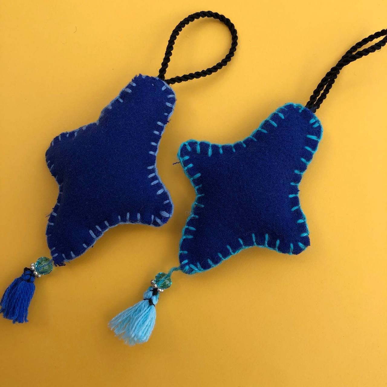 Adorno de fieltro con forma de estrella, ideal para decoración del árbol de Navidad. Están diseñados personalmente por mí y hechos a mano con fieltro, rellenos con fibra sintética y cosidos con mucho cariño. Tamaño aproximado: 10cm